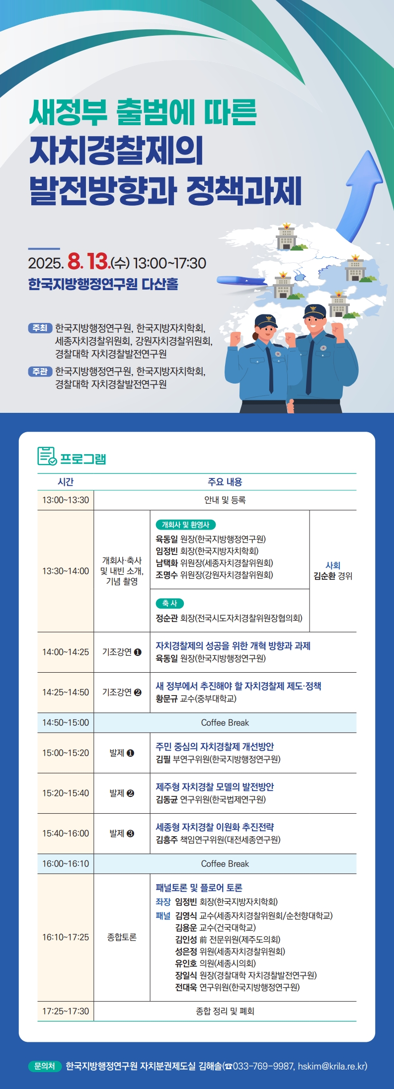 - 주 최 : 한국지방자치학회, 한국지방행정연구원, 세종자치경찰위원회, 강원자치경찰위원회,